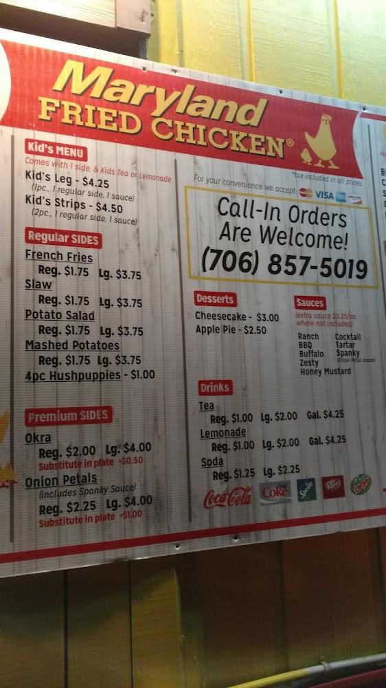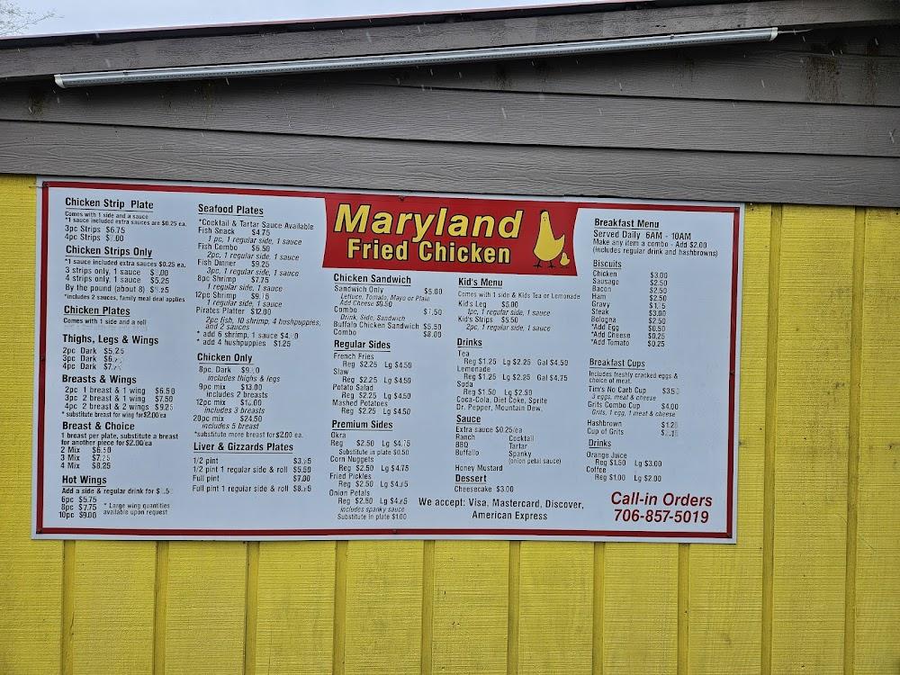 Welcome to Maryland Fried Chicken, your go-to spot for delicious comfort food in Summerville, GA. Nestled at 10626 Commerce St, we offer a casual dining experience perfect for lunch or dinner. Our diverse menu features mouth-watering fried chicken, juicy hamburgers, and delectable biscuits, all at affordable prices ranging from $1 to $10. Enjoy the convenience of drive-thru service, takeout, or dine-in with accessible seating options. With kid-friendly selections and scrumptious desserts, there's something for everyone. Stop by or call us at +1 706-857-5019 for a satisfying meal that hits the spot!